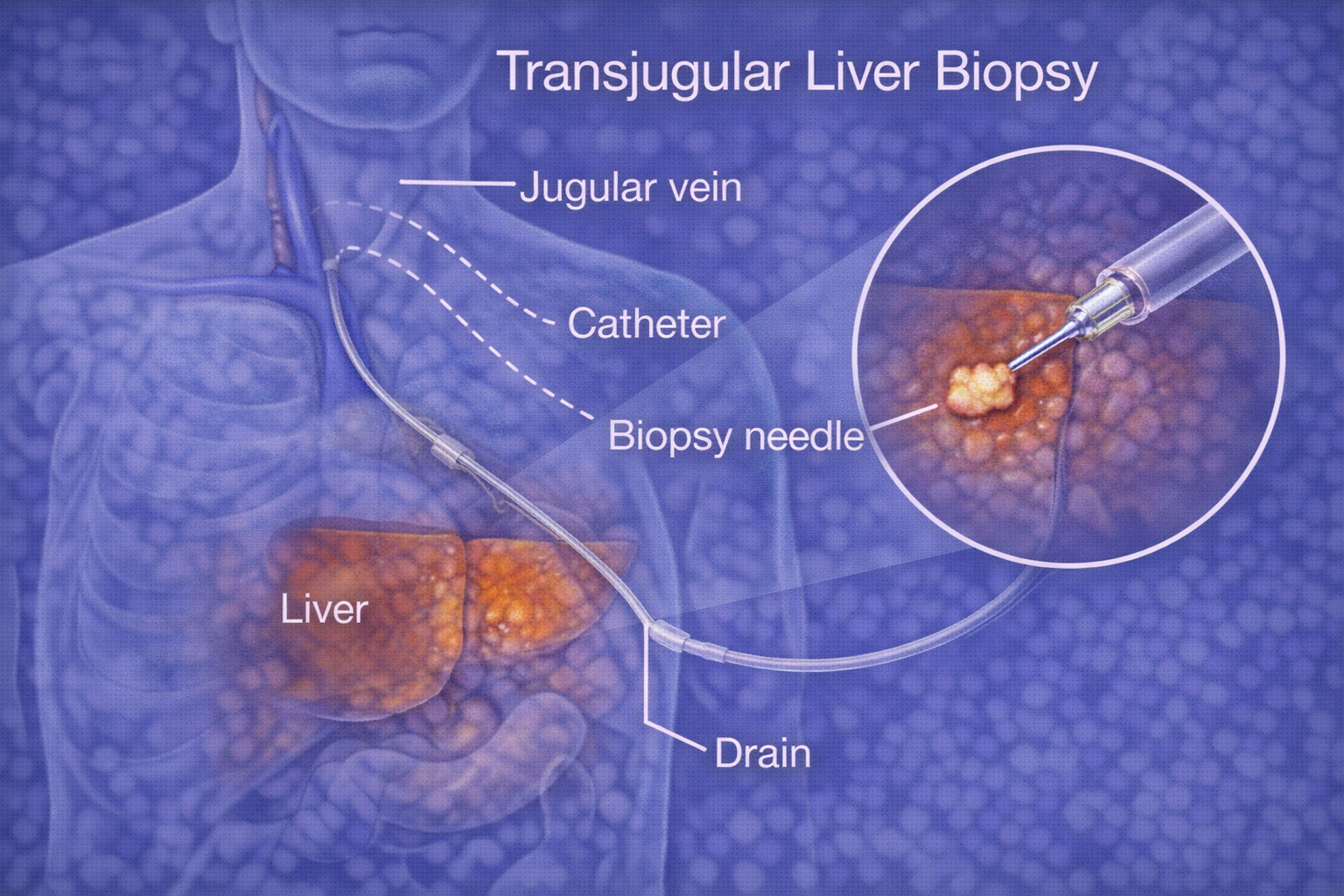 Transjugular Liver Biopsy (TJLB) is a minimally invasive, image-guided procedure that takes the biopsy from inside the blood vessels, making it safer for high-risk patients.